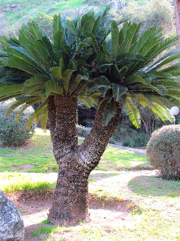 Рядом с фонарем и камнями — растение цикас (оно же — саговник, саговая пальма, хотя растение не является «родственником» пальм). Родиной цикаса (который повсеместно встречается в израильских парках и садах), является Япония. Цикас у японцев считается символом огня.