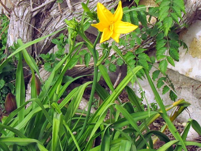 У лилейников длинные плоские узкие листья, которые растут пучком из корневой розетки растения, с поверхности почвы.