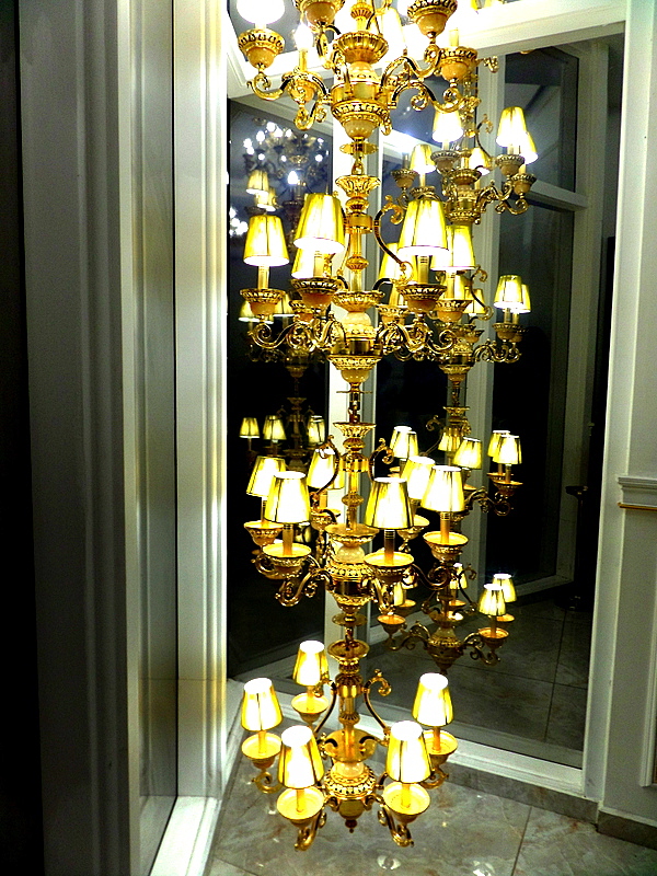 Оформление этого зала соответствует названию: сверкающий золотом канделябр, свечение которого отражается в зеркалах, золотые тиснения на стенах.