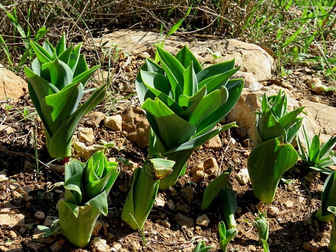 Проклюнулись листья Urginea maritima – Ургинея Морской лук – חצב מצוי