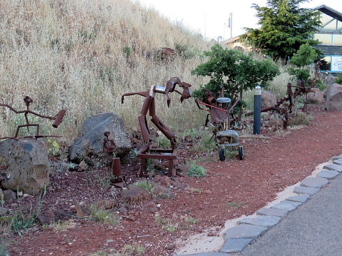 Здесь «разбит сад скульптур». Оригинальные металлические скульптуры созданы из остатков сирийской бронетехники, скульптор – Йоп де Йонг.