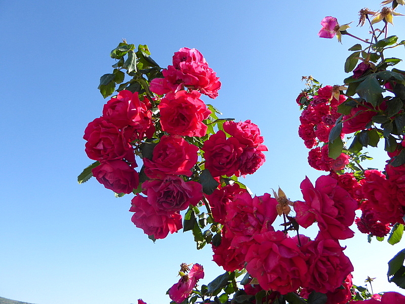 Такие розы украшают местные изгороди