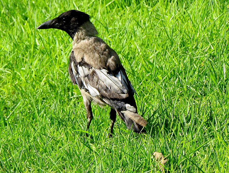 Серая ворона с белыми перьями