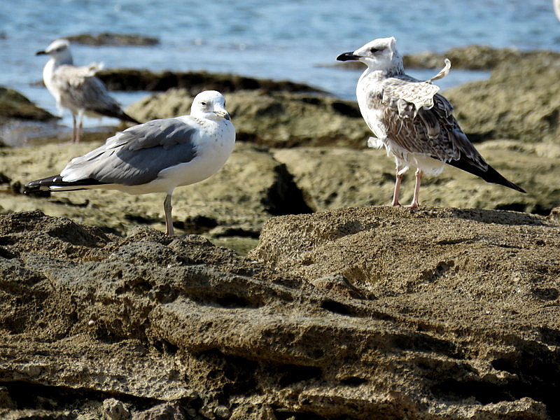 Армянские чайки, взрослая и молодая птицы