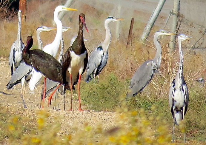 Цапли большие и малые белые, цапли серые — здесь их было немало. На их фоне особенно выделялись черные аисты.