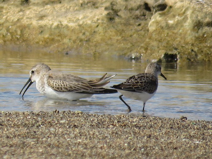Чернозобик слева, справа — кулик-воробей