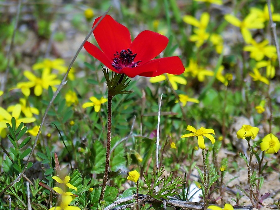 Заповедник Гиват (холм) Ирусим и национальный парк Гиват Хомра. Ирисы, анемоны, миндаль — такая вот весна в феврале! Но прежде попробуйте определить, что за желтые цветы на этом поле…