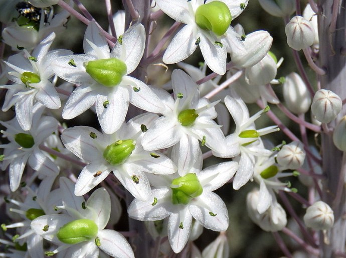 9) Весной дримию можно узнать по сочным, зеленым листьям — они кустятся пышными пучками. По осени листья пересыхают, а из корней выскакивают «стрелы» — стебли с бутончиками. Цветет дримия неравномерно, снизу вверх
