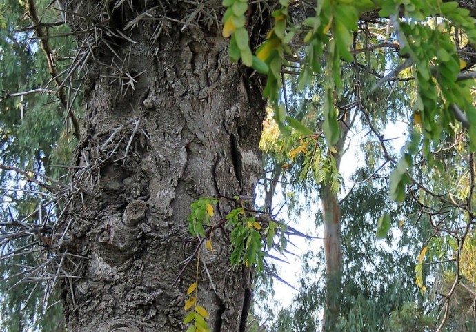 У этого дерева огромные шипы. Представьте, это акация (Senegalia, Акация nigrescens)! Точнее — акация чернеющая (черноватая), ее родина — Австралия.