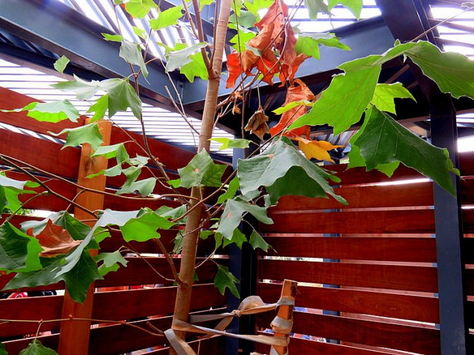 Почему платан оказался «в плену» наблюдательного пункта? Возводя такие деревянные постройки, постарались сохранить ранее посаженные здесь деревья.
