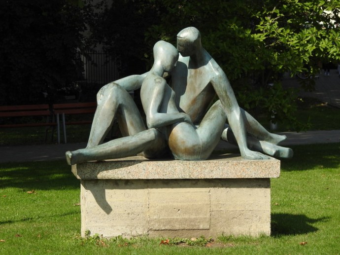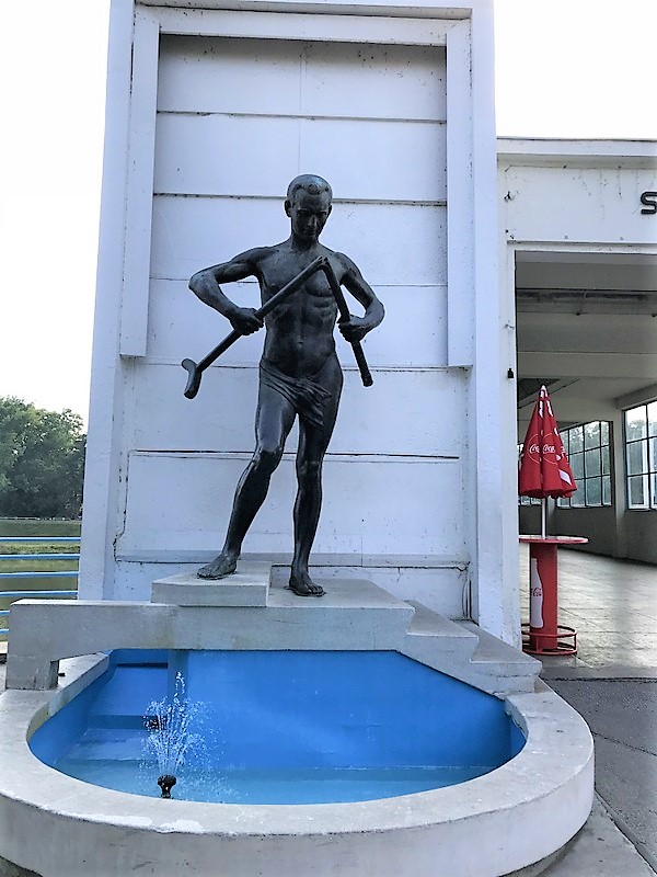 Человек, преломляющий костыль о колено — символ целебной силы Пьештян. Такая скульптура стоит перед Колоннадным мостом. Прямой намек: больше вам такое подспорье не пригодится! Прибыл на костылях — уедешь на своих двоих — идея символа принадлежит семье Винтер. В эскизе её осуществил австрийский художник Роберт Кухмайер.
