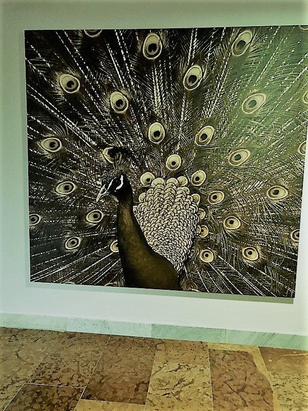 Ковровые дорожки, фотографии, панно с павлиньими перьями сопровождают нас повсюду. Цитирую: «Своего рода релаксация и напоминание: и тебе поможет…»