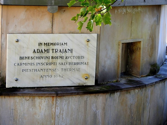 Курорт Пьештяны приобрёл известность в 1642 году, когда Адам Траян упомянул его в поэме, где есть такая строка: «Самый исцеляющий курорт — Пьештяны». В настоящее время главный источник назван его именем. Источник был оформлен в 1929 году, в 2001 году был восстановлен.