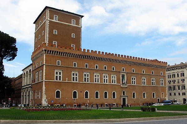 Дворец Венеция считается одним из первых памятников Возрождения в Риме. Он расположен в западной части площади.