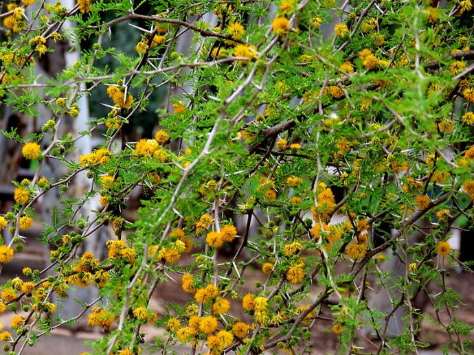 Колючки этого дерева – огромные шипы. Представьте, это тоже акация! Ее родина – Австралия.