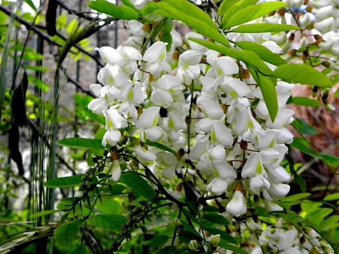 «Белой акации гроздья душистые…» Гроздья душистые, верно. А генетика растения иная. Это — Робиния псевдоакация (лжеакация) – Robinia pseudoacacia. «Белая акация» — тривиальное название.