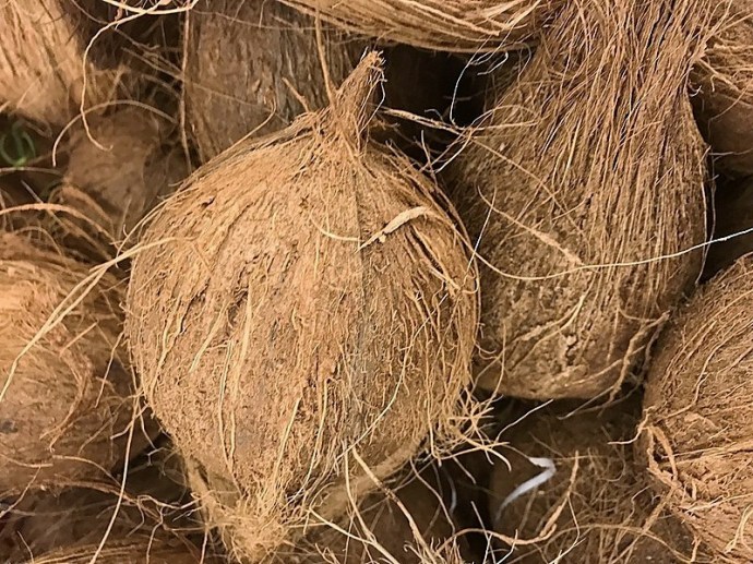 Плод кокосовой пальмы имеет 3 слоя: внешний слой имеет оттенки от зеленого до желтого, средний слой толстый и богат клетчаткой, внутренний слой твердый.