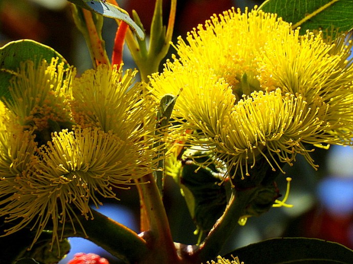 Желтые цветы распустились на эвкалипте, который называют красношлемный, краснотюрбанный, краснопокрытый. И даже «Эвкалипт красная шапочка»… Почему?